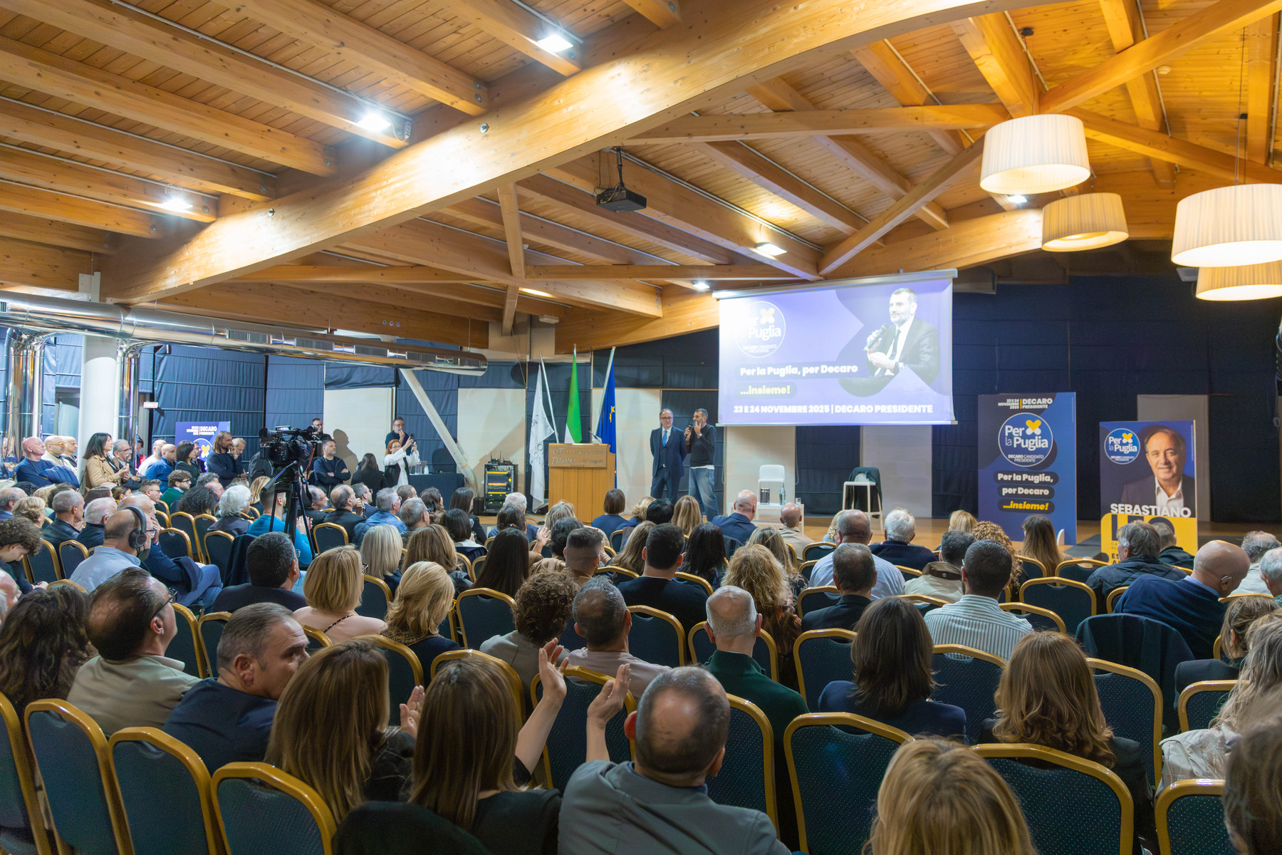 Decaro, nel suo intervento, ha anche parlato con passione di sanità, impresa, formazione e futuro, ribadendo la necessità di mettere le persone al centro delle politiche regionali, invitando al voto per una partecipazione attiva di cittadine e cittadini.